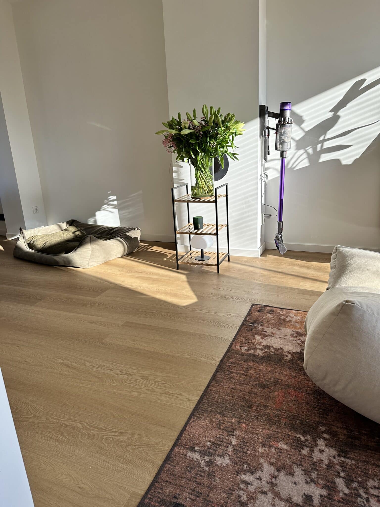Wat echt onderscheid maakte, was de flexibiliteit van Stile Floors. Op het moment van de verbouwing huurden ze nog een oud appartement dat ze zo snel mogelijk wilden opzeggen. Toen bleek dat de vloerverwarming aanvankelijk niet goed werkte, baalden ze enorm en waren ze bang dat alles zou uitlopen. Gelukkig dacht TJ van Stile Floors goed mee over hoe dit opgelost kon worden, zodat de PVC-vloer alsnog op tijd gelegd kon worden. Dit zorgde ervoor dat ze op tijd konden verhuizen en niet langer in hun oude appartement hoefden te blijven.