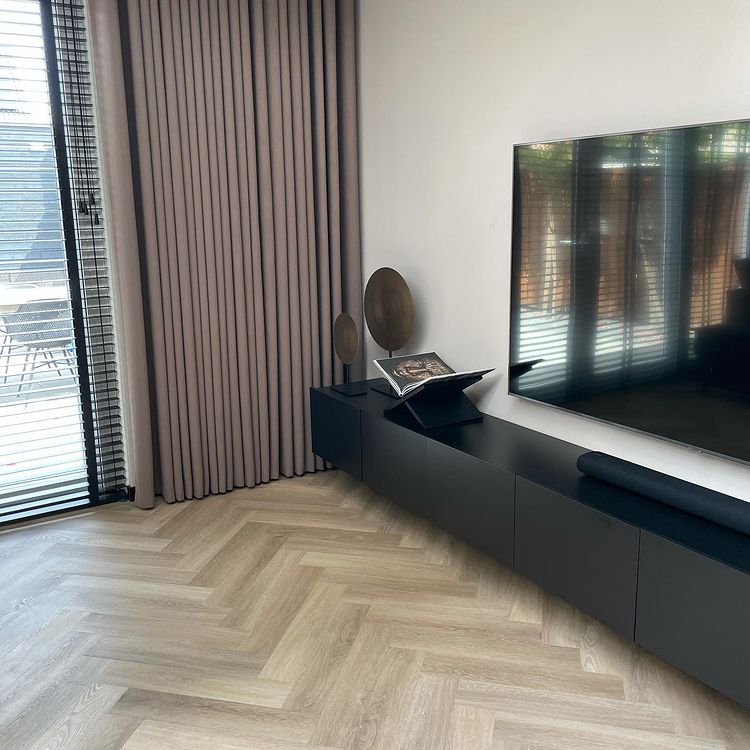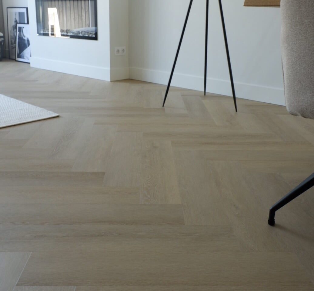 Een visgraatvloer herken je meteen aan de V-vorm: korte PVC planken die schuin tegen elkaar worden gelegd. Dit klassieke legpatroon blijft populair door zijn tijdloze uitstraling en het speelse ritme in de vloer. Dit klassieke patroon is al jaren populair en geeft elke ruimte een stijlvolle basis. Het voegt karakter toe aan elke ruimte en vormt een stijlvolle basis, of je nu van modern of klassiek houdt. Dankzij het minimale onderhoud is een visgraatvloer bovendien net zo praktisch als mooi.