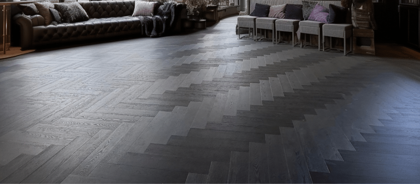 Walvisgraat vloer Oscar diep zwart eiken PVC Visgraat XL